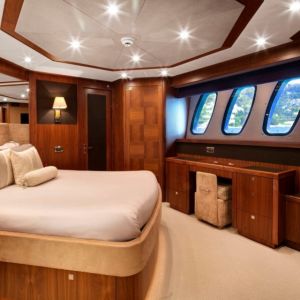 THE DEVOCEAN была доставлена с британской верфи Sunseeker в 2008 году. Ее темно-синий идеальной формы корпус сразу вышел вперед, затмив конкурентов. Экстравагантный интерьер, выполненный из черного американского ореха создает шикарную и уютную атмосферу на борту. Яхта может принять до 11 гостей в 5 каютах, включая каюту Владельца во всю ширину яхты, расположенную на главной палубе, три каюты double и одну каюту twin с дополнительной кроватью Pullman на случай, если понадобится еще одно спальное место. Все каюты оборудованы ванными комнатами, в отделке использован черный мрамор и мебель из древесины ореха.